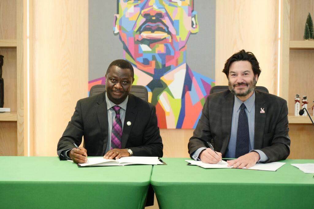 ECC President Dr. Augustine A. Boakye and MSU President Dr. Jonathan Koppell are pictured during the signing ceremony for a new transfer agreement at ECC’s Newark campus.