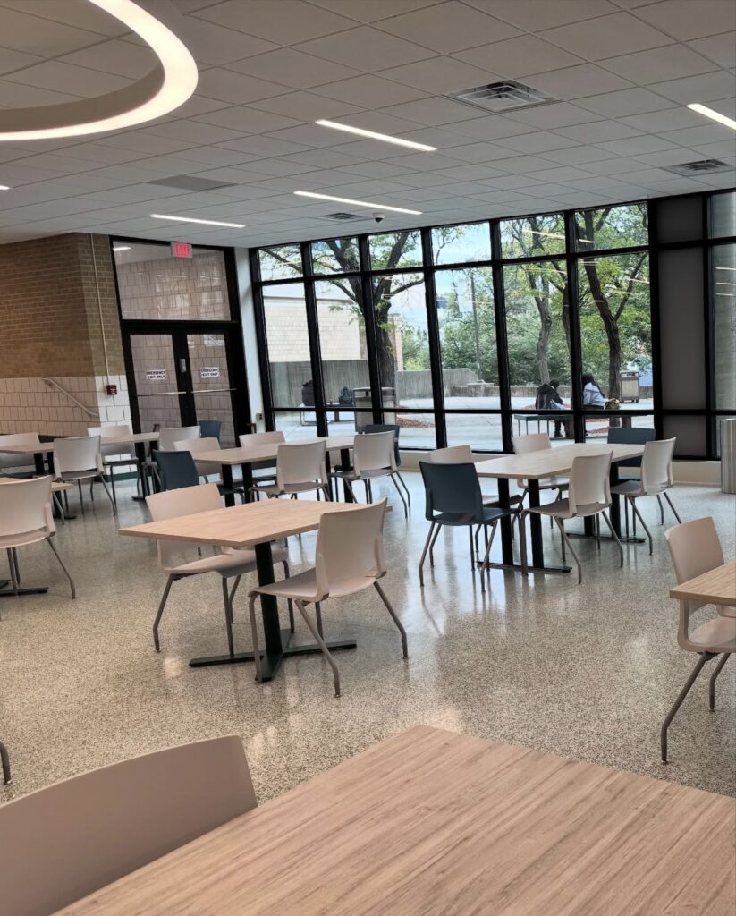 Construction began in the summer of 2025 and was completed ahead of schedule. The redesign, led by Arcari + Iovino Architects, transformed the space into a bright, open, and inviting area where students can relax, study, and connect between classes.